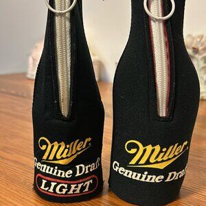 2 Vintage Miller Half Zip Bottle Koozies 1 MGD and 1 MGD Light