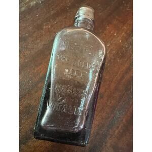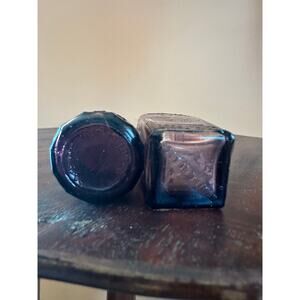 These are two vintage miniature bottles with a beautiful purple hue, perfect for collectors of antique bottles or those looking to add a touch of vintage charm to their decor. They are in great condition for their age. Add a unique touch to your collection with these charming purple bottles! Don't miss out!