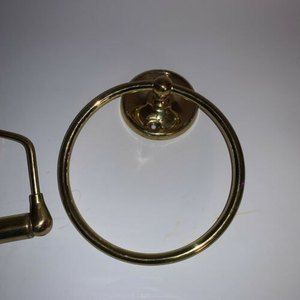 2 Vintage Modern Brass Wall Mount Toilet Tissue Paper Holder & Towel Holder