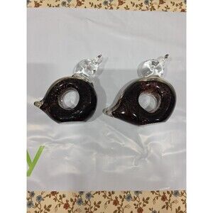2- Vintage Murano? Glass Ducks Birds Paperweights Black Purple Clear MCM Home