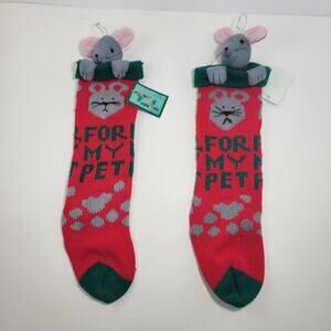 2 Vintage NOS 16" Pet Christmas Stocking With Mouse By Greenbacks