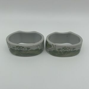 2 Vintage Napkin Rings Holders Green Ginkgo Leaf On Lt Gray Ring