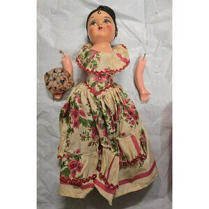 2 Vintage Old Composition Dolls Mexico 16" & 14" & Paper Streamer 12 ft
