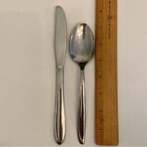 2 Vintage Oneida Early Sand Dune Stainless Groove Down Side Glossy Dinner Knife & Dinner Spoon.