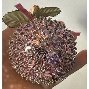 2” Vintage Pink Sequin Christmas Ball With Rose Embellishment