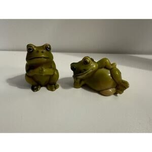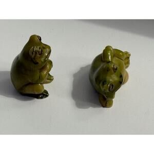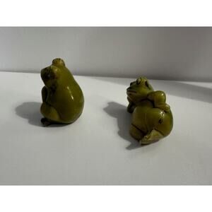 2 Vintage Plastic Mini Green Frog Anthromorphic Figurine Hong Kong 1.75" by 1.25" Very Good Condition
