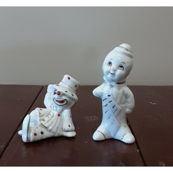 2 Vintage Porcelain Clown FIgurines