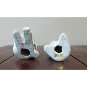 Cute little figurines in good condition. 1 is marked Made in China, and the other is Made In Taiwan. 1 measures 4 inches tall and the other is 2.75 inches tall. See pictures for condition.
