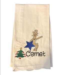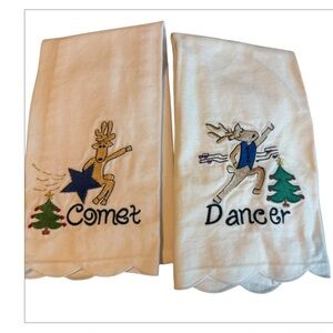 2 Vintage Pottery Barn Christmas Reindeer Hand Towels (Dancer and Comet)