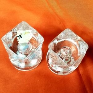 2 Vintage Rare Structural 3D Textured Glass Candlestick Holders MCM style
