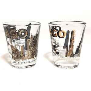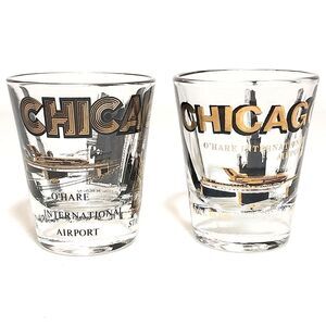 2 Vintage Shot Glasses Chicago International Airport #S001
