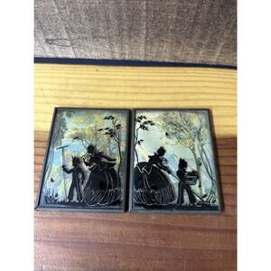 2 Vintage Silhouette Reverse Painting on Convex Glass They are 4.5x3.5 inches. Please ask any questions amd