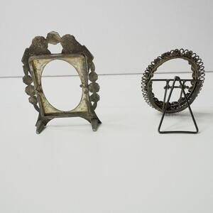 2 Vintage Small Standing Backless Oval Photo Frames- Silver Floral, Orange Gems