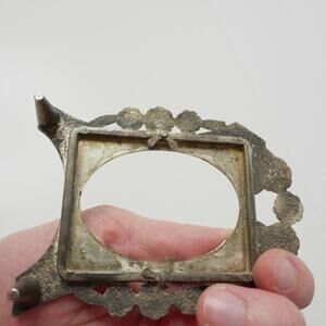 2 Vintage Small Free Standing Backless Oval Photo Frames- Silver Tone Floral flowers, Orange Gems art nouveau vtg