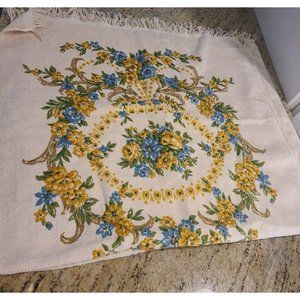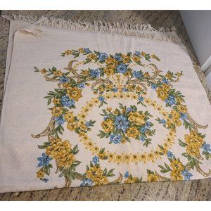 2 Vintage TASTEMAKER Bath Towel MCM Yellow Blue Floral Scroll Fringe Edge 43"