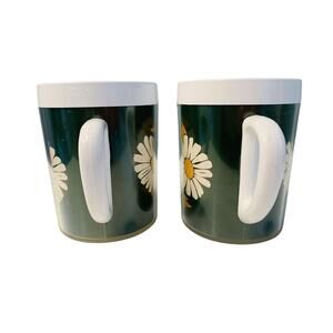 2 Vintage Thermo-Serv Flowers Floral Insulated Mug Plastic Cup Handle West Bend