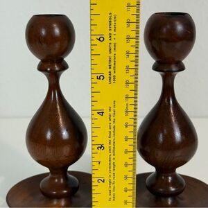 2 Vintage Turned Wood Spindle Candle Holders 6:5”