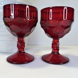 2- Vintage Viking Glass Georgian Ruby Red 4.25” Cordial Drinking Glass Goblet