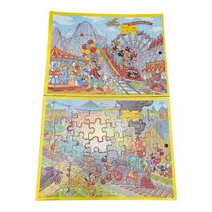 2 Vintage Walt Disney Mickey Mouse Cardboard Puzzles Jaymar Specialty Co 3329