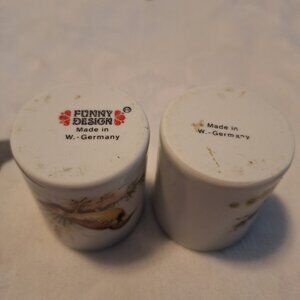2 Vintage West German Ceramic Song Bird Taper Candle Stick Holders Funny Design