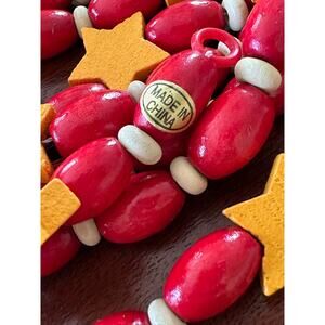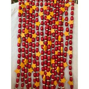2 Vintage Wood Beads stars Christmas Garlands 20 ft ea. Red Yellow wooden decor