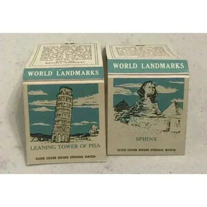 2 Vintage World Landmarks Matchbook Covers Sphinx Leaning Tower Pisa Ephemera