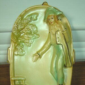 This listing is for a pair of vintage chalk ware plaques--a man & lady with birds. They measure approx. 7" tall x 4 1/4" wide. See pictures for details. Other than some small chips in the paint, they are in good vintage condition.