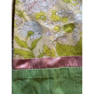 28x20” two super cute pillow shams, gorgeous pattern lime green yellow and pink with matching green trim and silky pink ribbon so adorable and fun great vintage condition and ready to use!