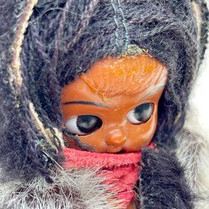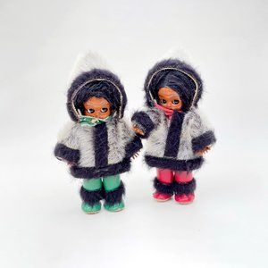 2 Vtg. 60s Knickerbocker/Carlson Mfg. 7" Hard Plastic Inuit-Eskimo-Native Doll