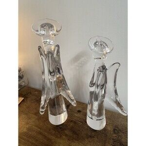 2 Vtg Clear 24% Lead Crystal Glass Angel Figurines 11” & 9” Japan Christmas