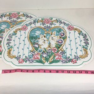 2 Vtg Easter Rabbit Bunny Heart Pastel Floral Easter Placemats Town Country READ