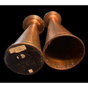 2 Vtg Hammered Copper & Brass Studded Candle Holders Made In India 9.5" & 12"