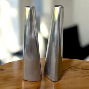 2 Vtg IKEA Renos Chrome MCM Swedish Design Taper Candle Holders 7 Inches 80-90s