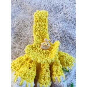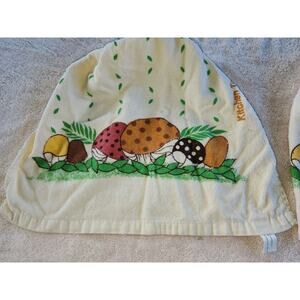 2 Vtg Mushroom Kitchen dish towels Crochet Hanging Hand Towel Yellow Kitsch