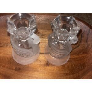 2 Vtg Partylite Candle Holders Swan Crystal Glass Pair Set Lot Hollywood Regency