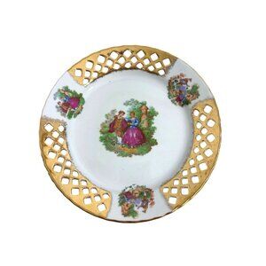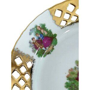 • Vintage Courting Couple, Porcelain, Glazed, Reticulated, Gold Trim, Set of 2, round