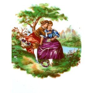2 Vtg Plates Romantic Courting Couple APULUM Porcelain White Gold Trim Romania