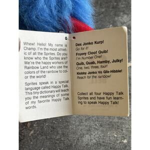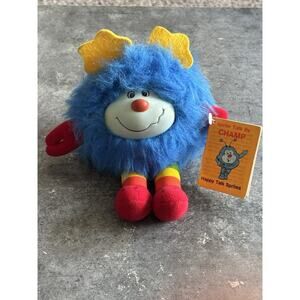 The product is a vintage Rainbow Brite sprite stuffed animal in white and blue colors, made by Hallmark in 1983. This small 7-inch toy features one of the beloved characters from the Rainbow Brite series and is sure to be a nostalgic collectible for fans of the beloved animated show. Perfect for collectors of vintage toys or fans of the Rainbow Brite series, this Hallmark stuffed animal is a charming addition to any collection.