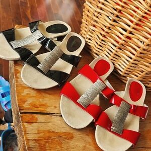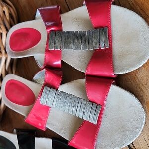2- Vtg Ros Hommerson leather sandals slides red black sz 10