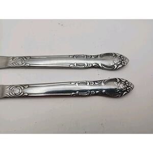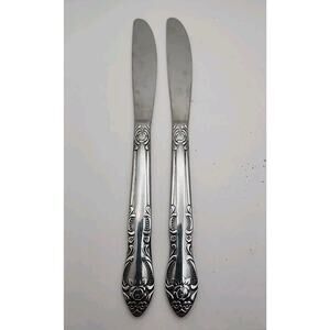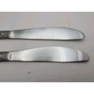 2 Vtg Stainless Steel FLATWARE Butter Knives Ornate Rose Floral Handle Japan