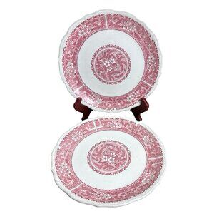 2 Vtg Syracuse China Strawberry Hill Pink Dinner Plates Scallop Restaurant 10 in
