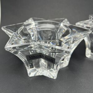 2 Vintage Villeroy & Boch Germany Large Glass Star Votive Candle Holders Lucca 4.75”