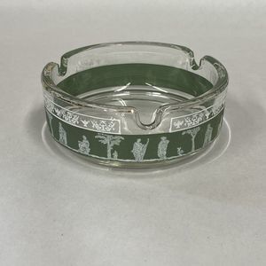 2 Vtg Wedgwood Hellenic Jasperware Jeanette Glass Green Greek Ashtrays -READ