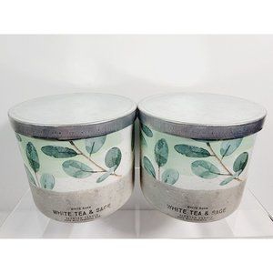 2 Bath & Body Works White Barn WHITE TEA & SAGE 3 Wick Scented Candle 14.5oz NEW
