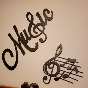 Music is @ 24 "wide 13 tall. Treble cleft is 13 x 11. These are taken from the largest point as you can see the other points will vary as it is not a framed item. Nice pieces. Can be bought individually if desired?