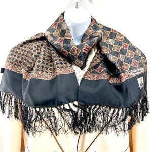 2 Ways Burberrys 100% Silk Satin Scarf 60"x13" Brown black Check Art Fring (1