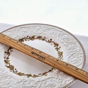 2 Wedgwood Golden Ivy Dinner Plates 10.5" Laurel Rim raised relief England