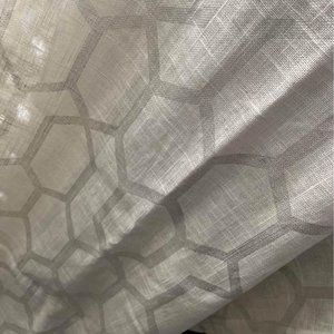 2 West Elm Linen Blend 48W x 84L Off white Curtains with Silver Patterns.