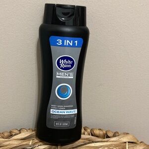 🆕 2 White Rain 3-in-1 Men's body wash, shampoo, and conditioner. Ocean Wave scent. Black bottle with blue and silver accents! Men’s collection 18 fluid ounces. Invigorating means complete body care design for ultimate clean and comfort! Brand New!