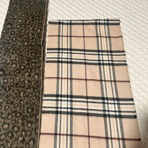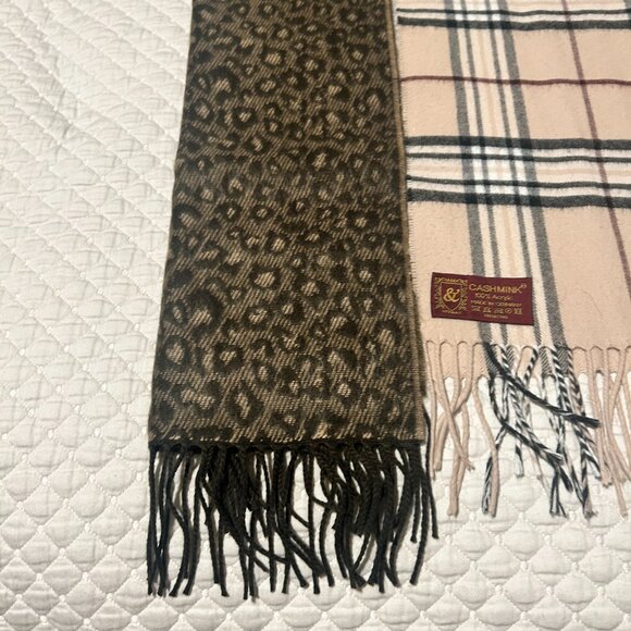 Good condition, 2 scarfs, brownish tones. Brown (LV print) length 70 width 12. Burberry print length with the fringe 56, width 11. 100% Acrylic. Branch "Cashmink"